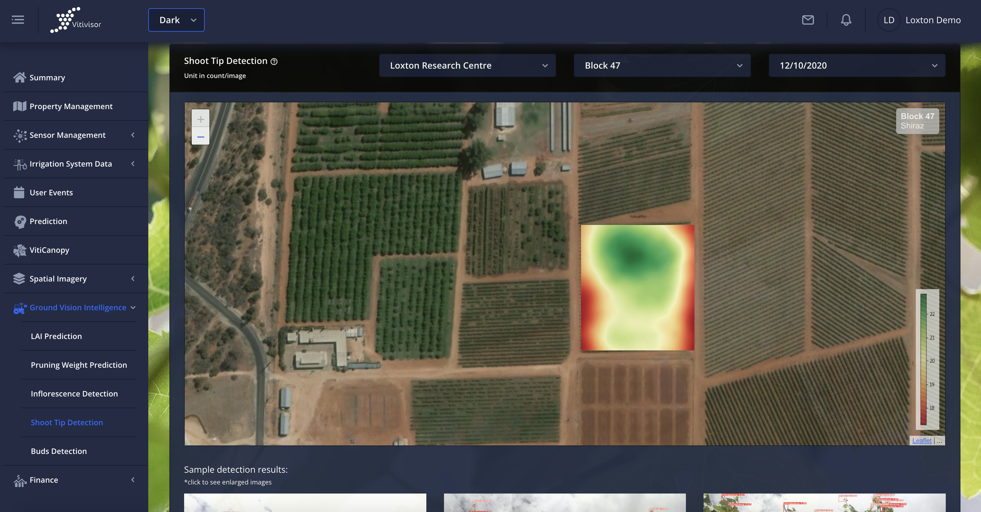 - Converts images into vine health and development indices (e.g. plant area index, pruning weight, inflorescence, shoot number, bud count and plant leaf temperature). Automatically uploads and integrates with the VitiVisor platform.